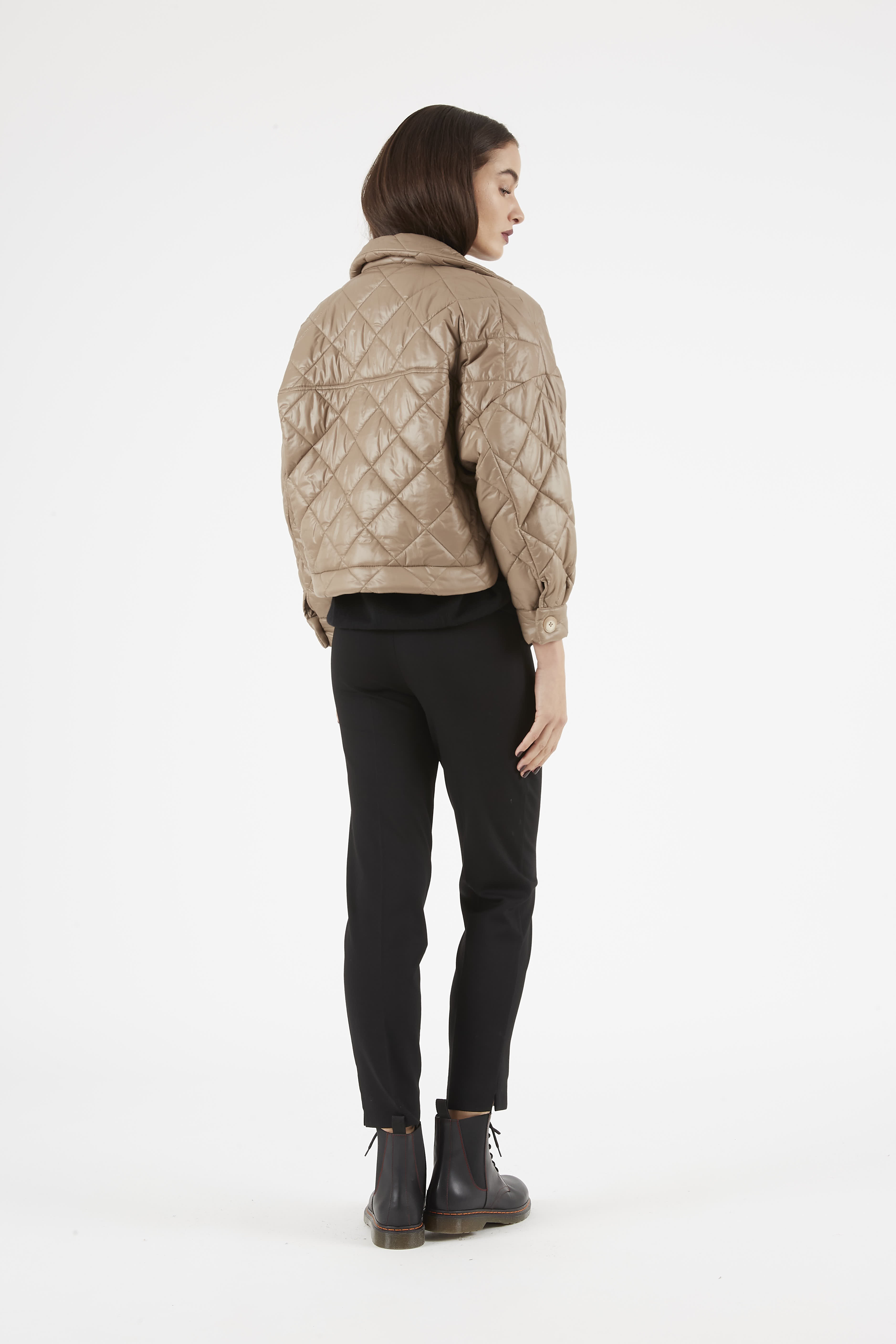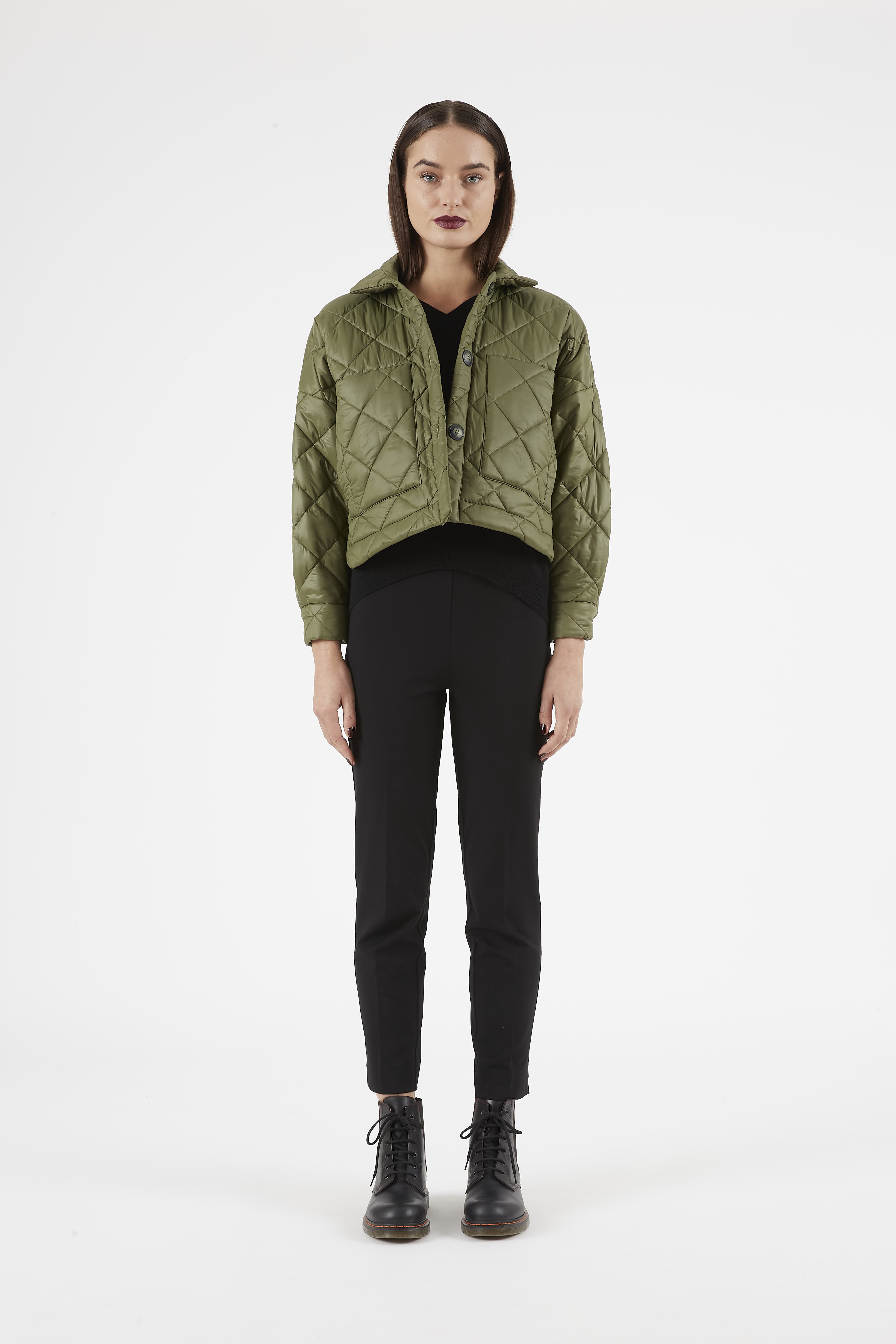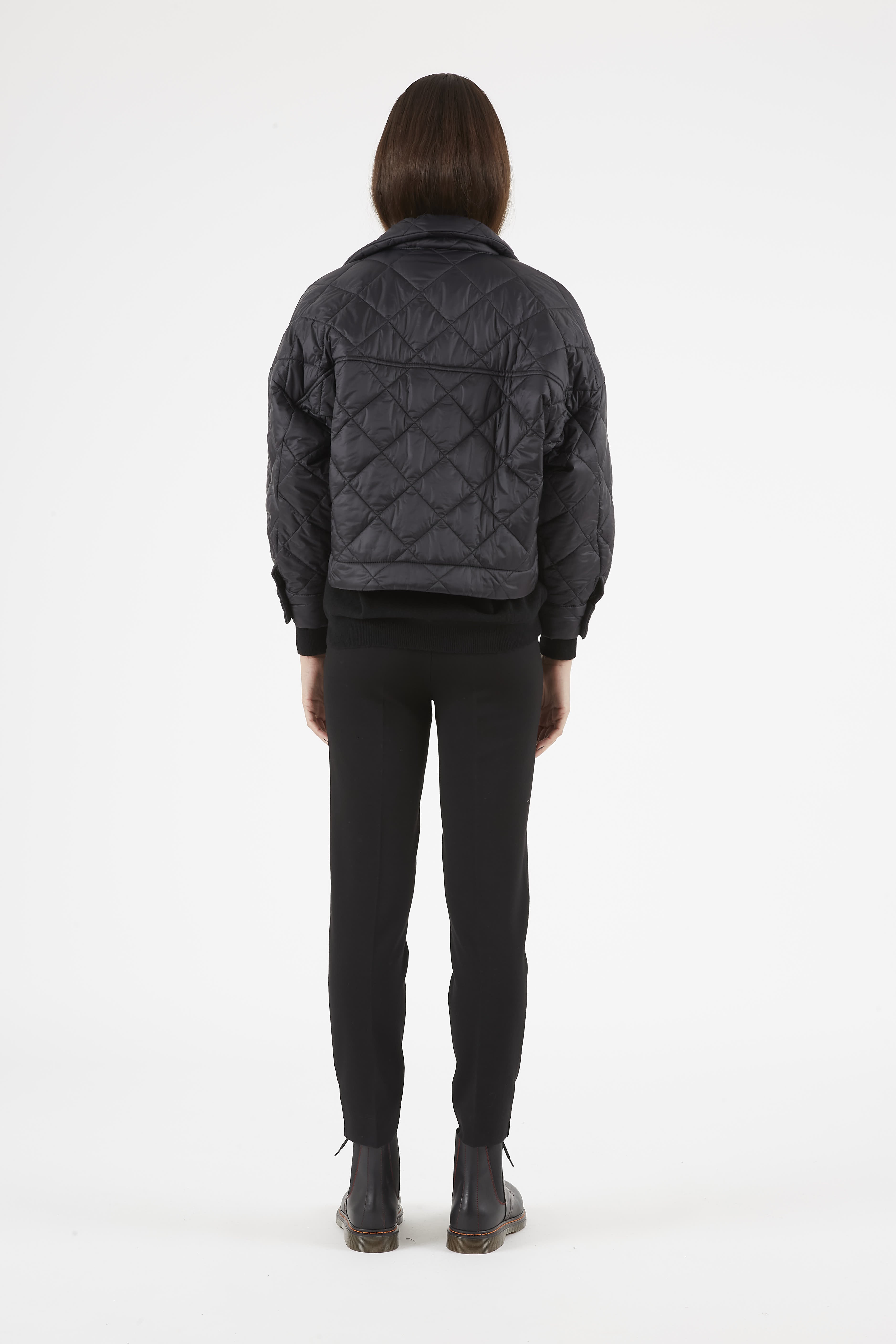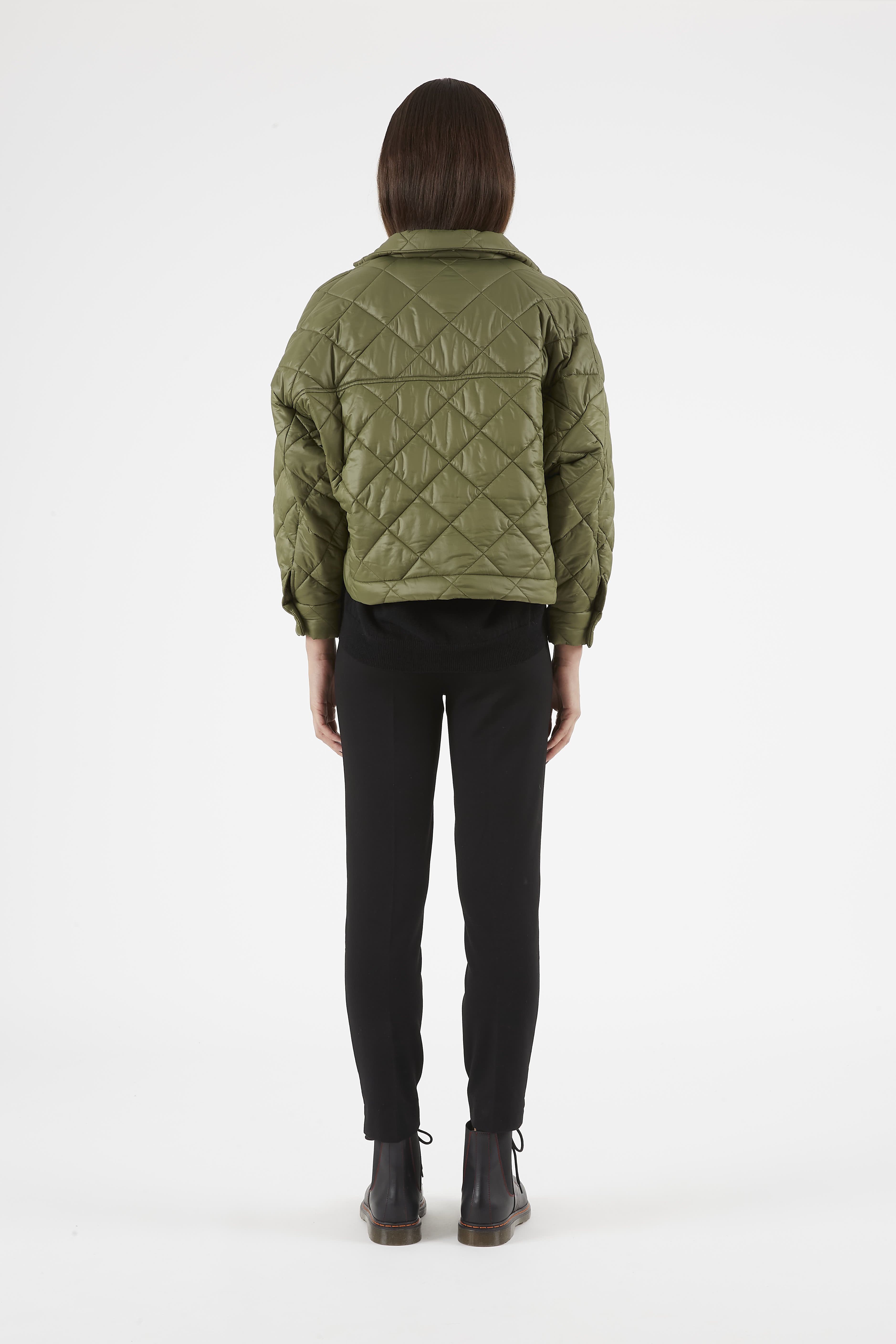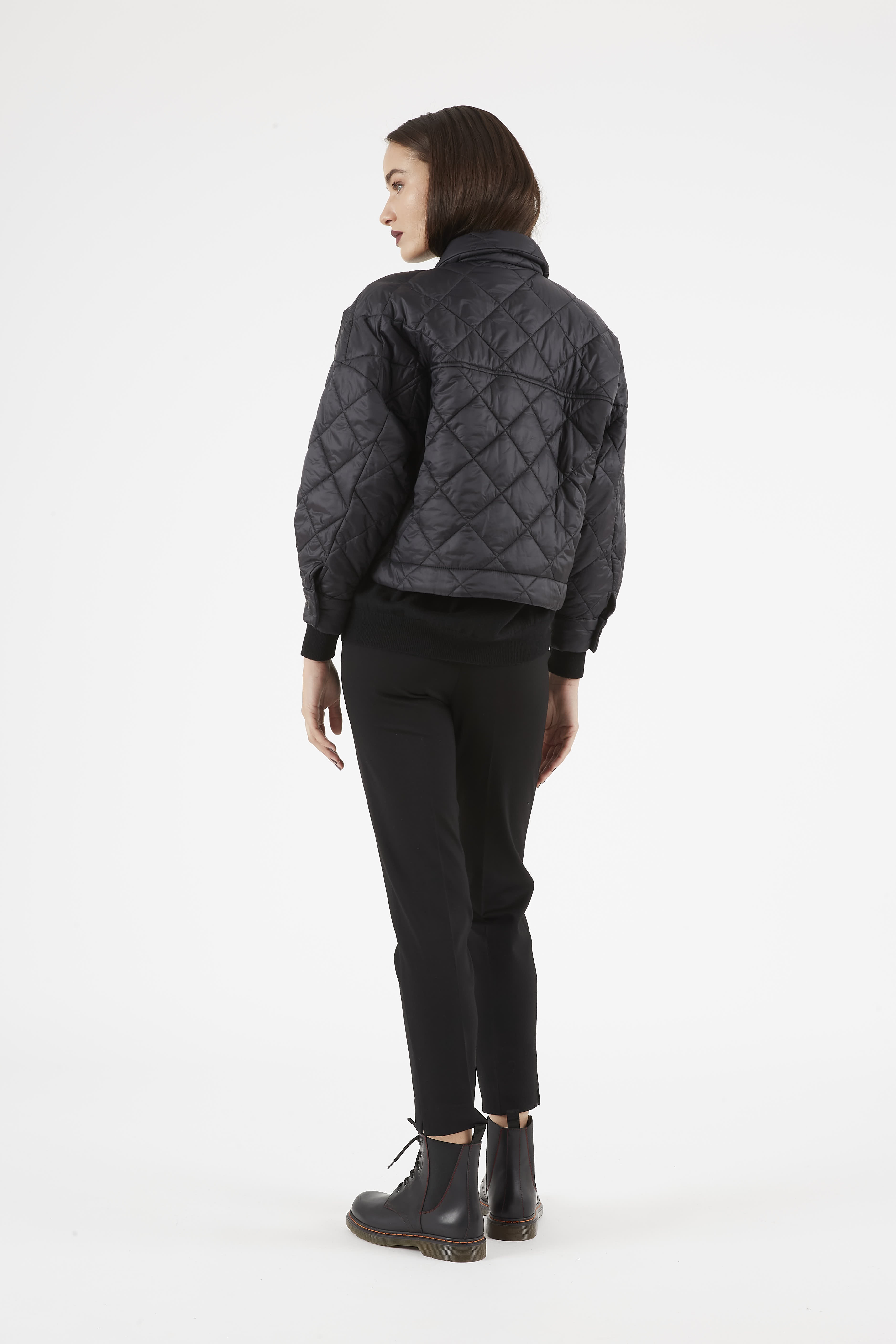 Blouson a rombi trapuntato. Chiusura frontale con bottoni. Grandi tasche applicate laterali. Bottone al polso.
