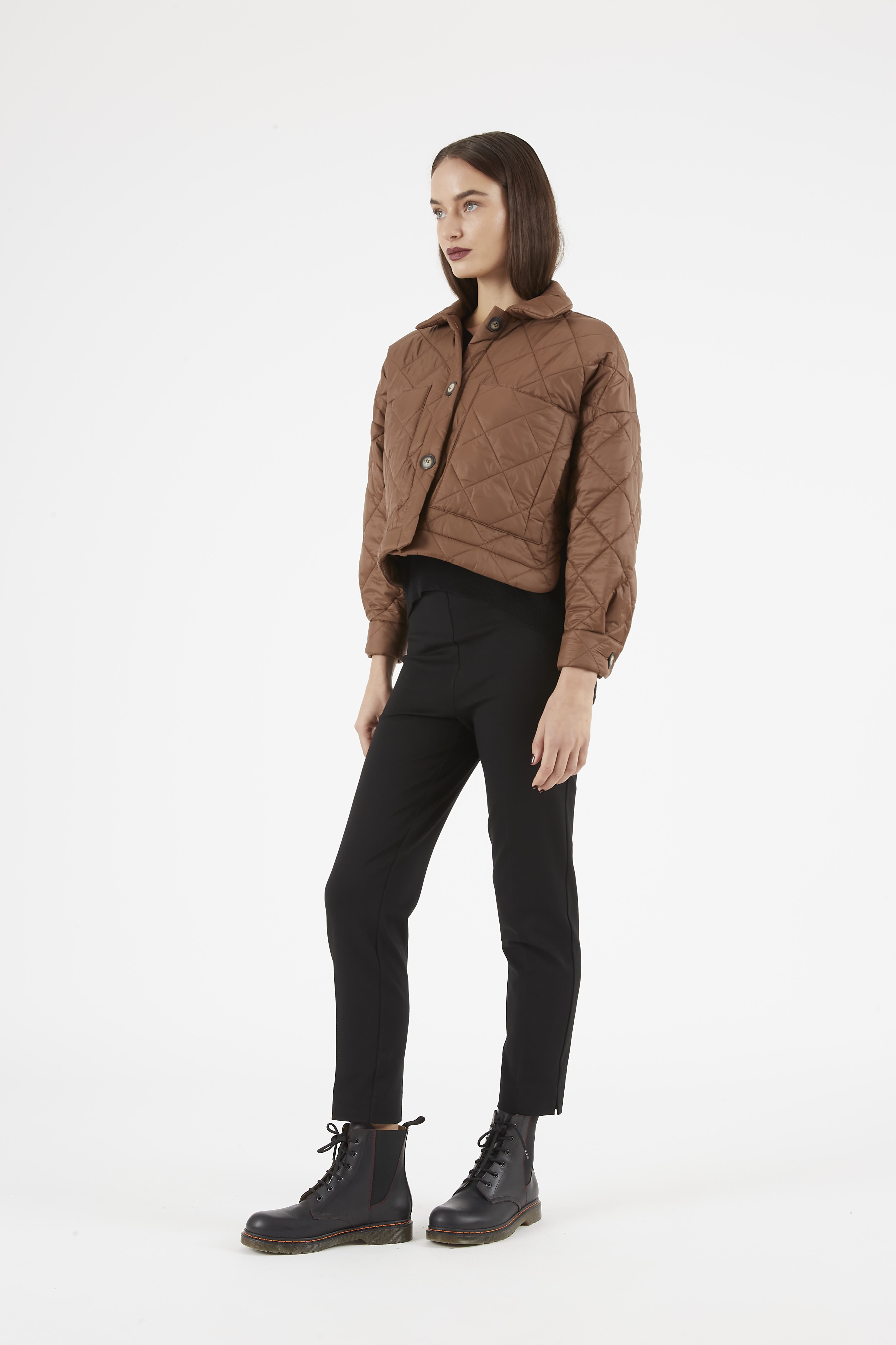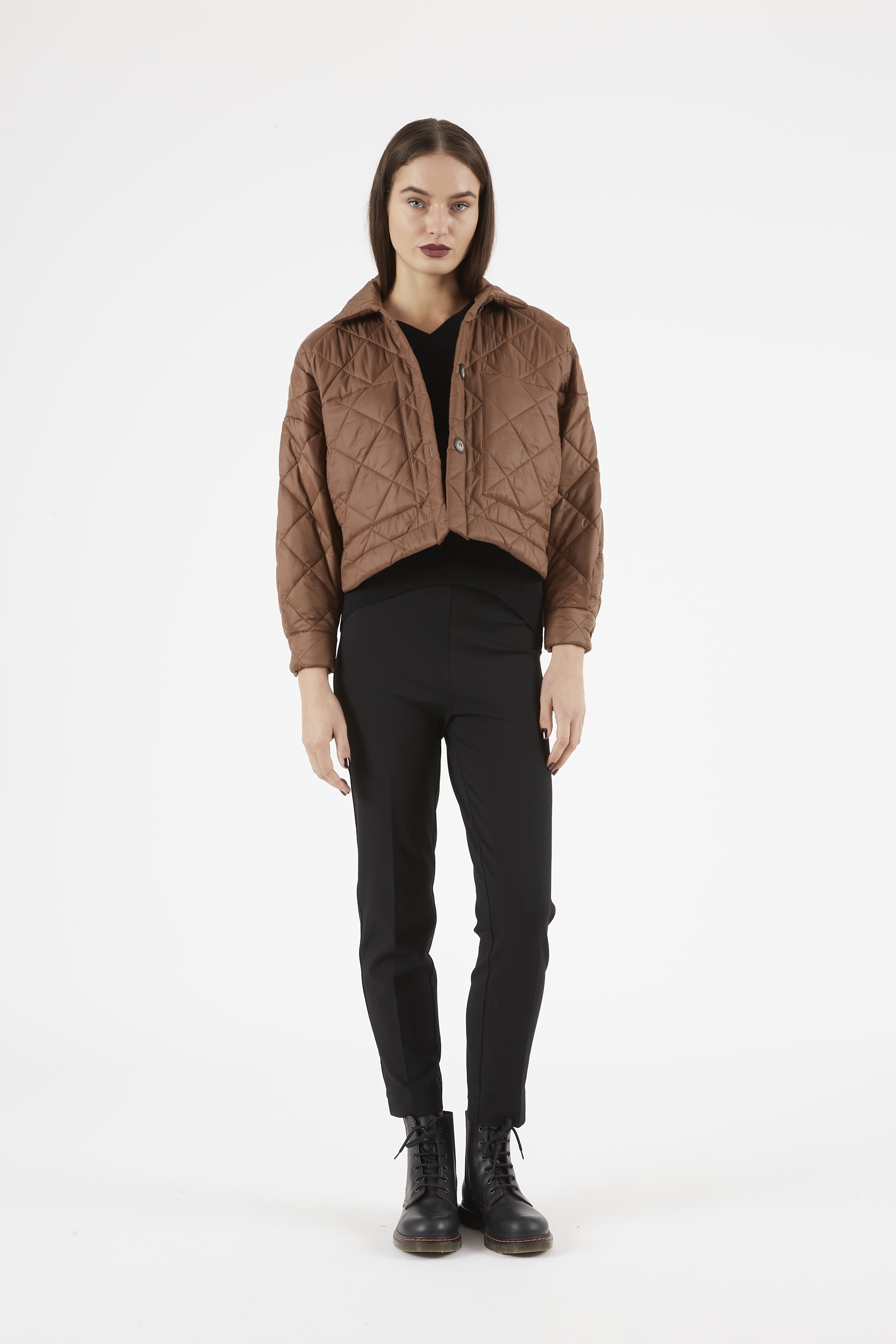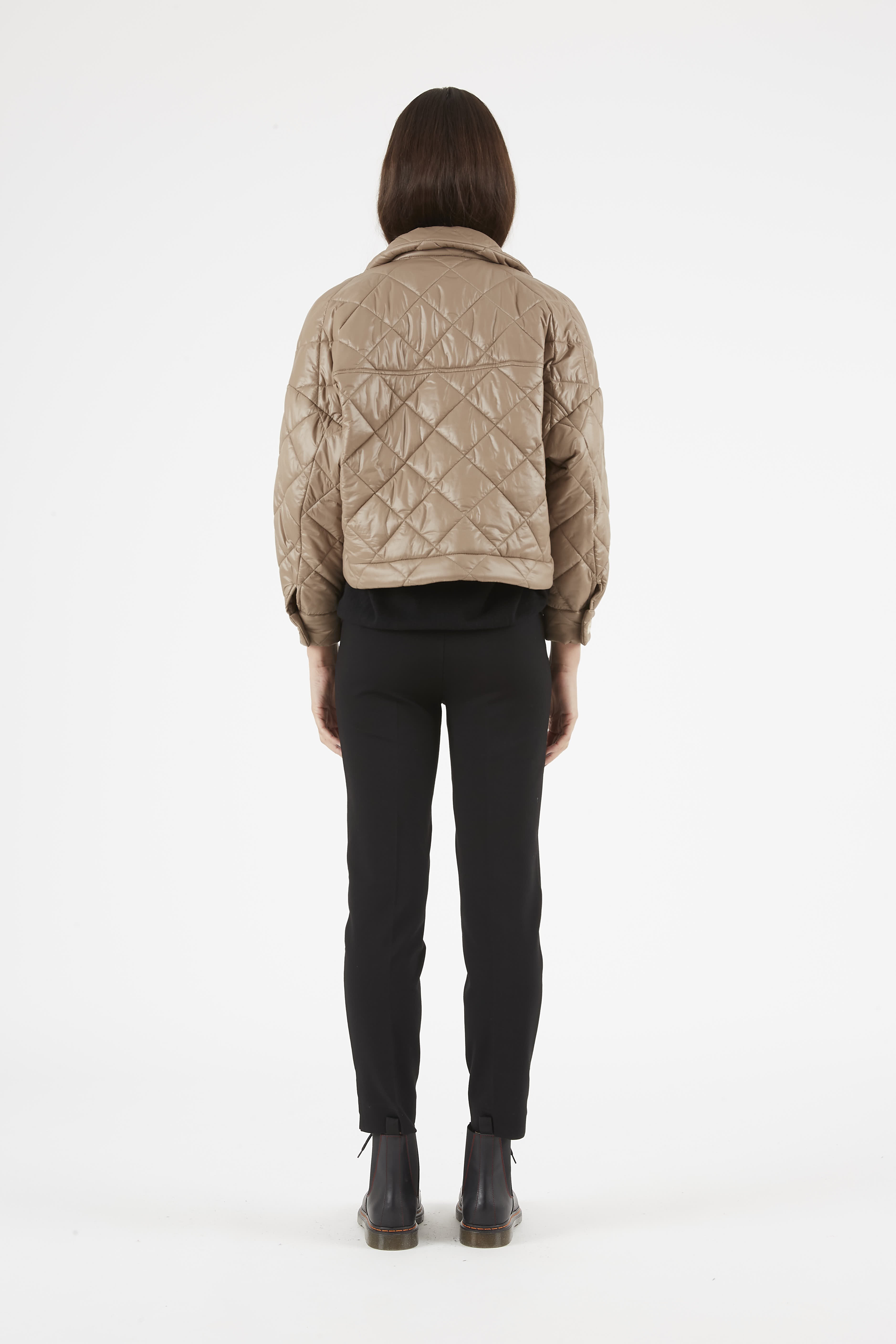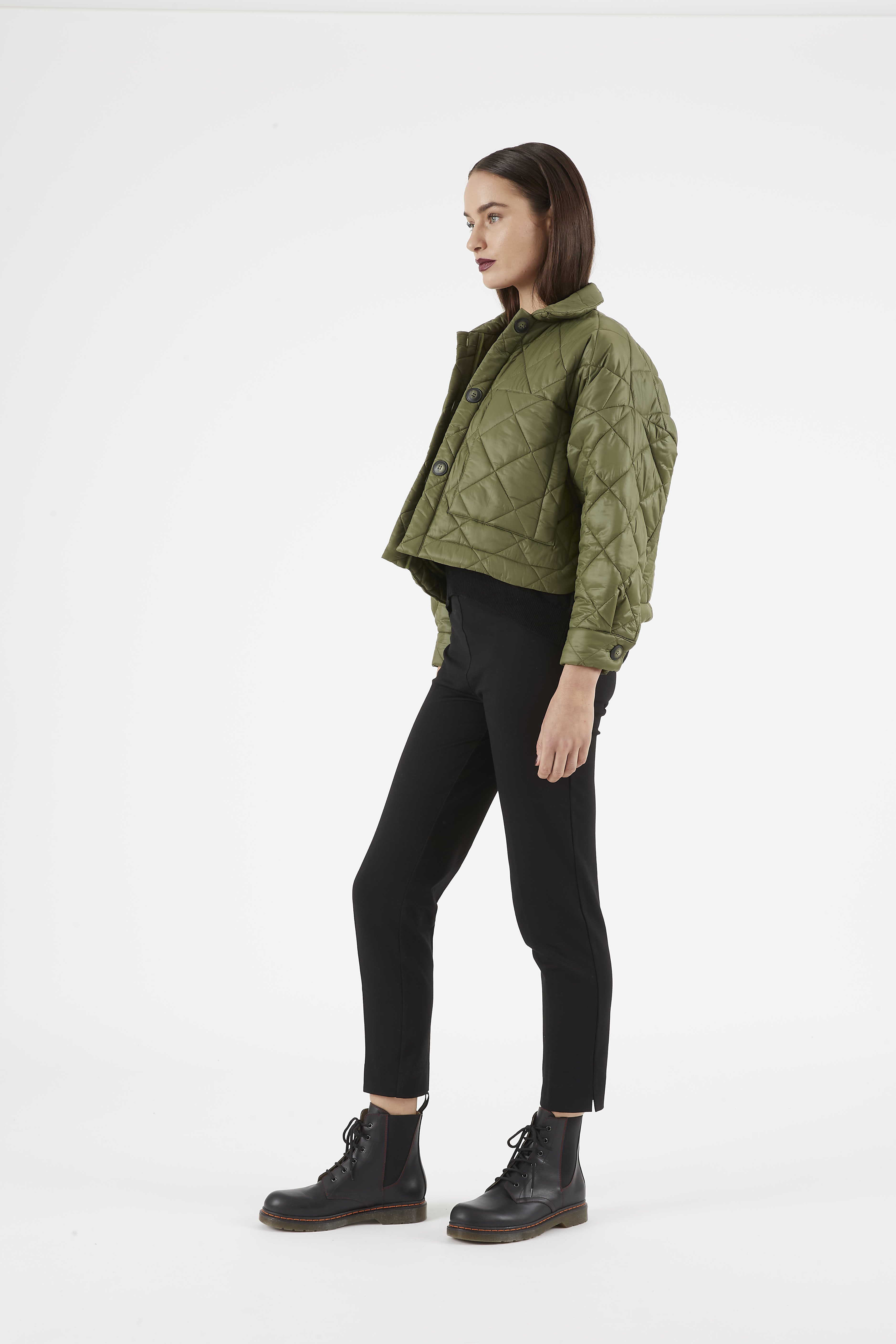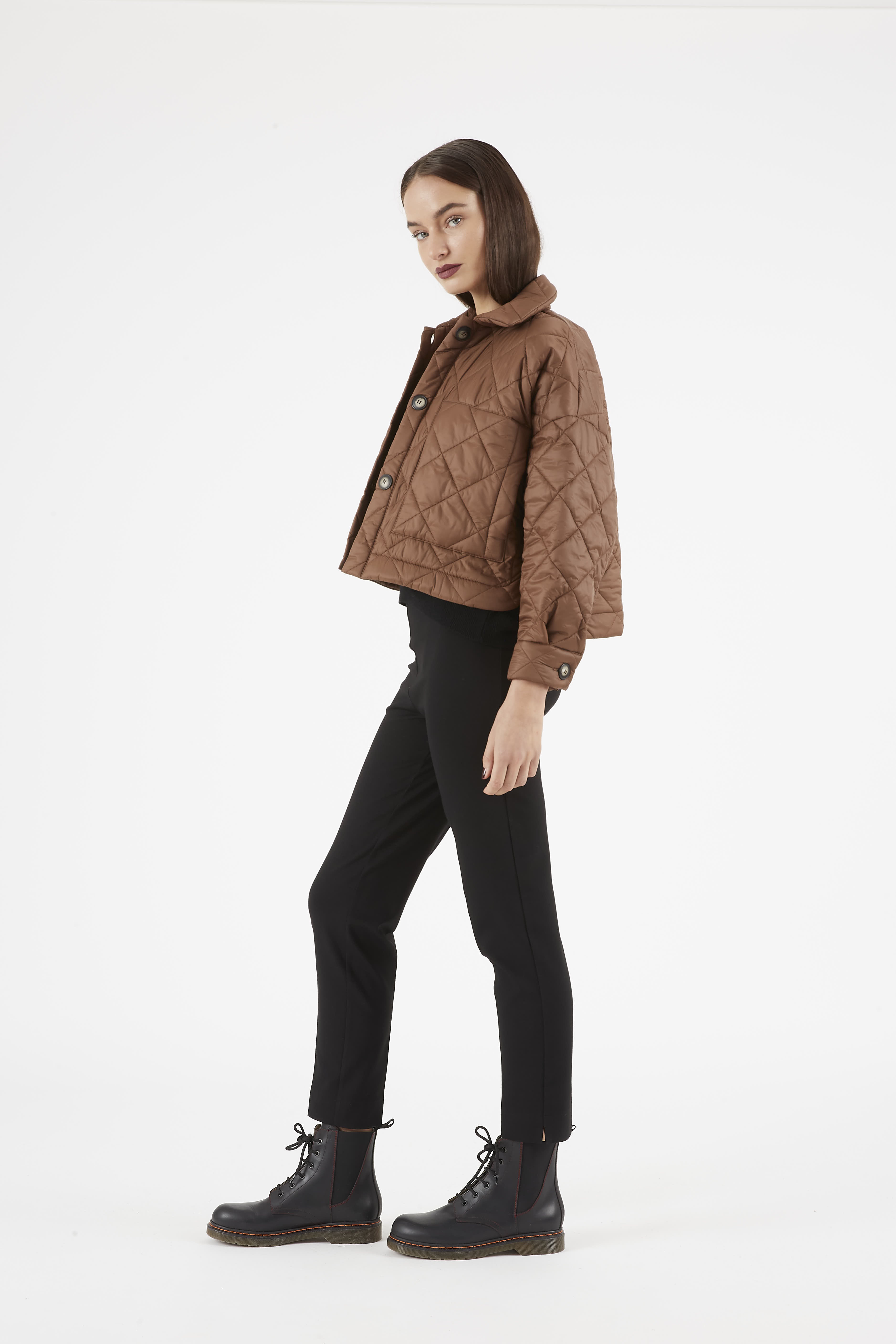 Blouson a rombi trapuntato. Chiusura frontale con bottoni. Grandi tasche applicate laterali. Bottone al polso.