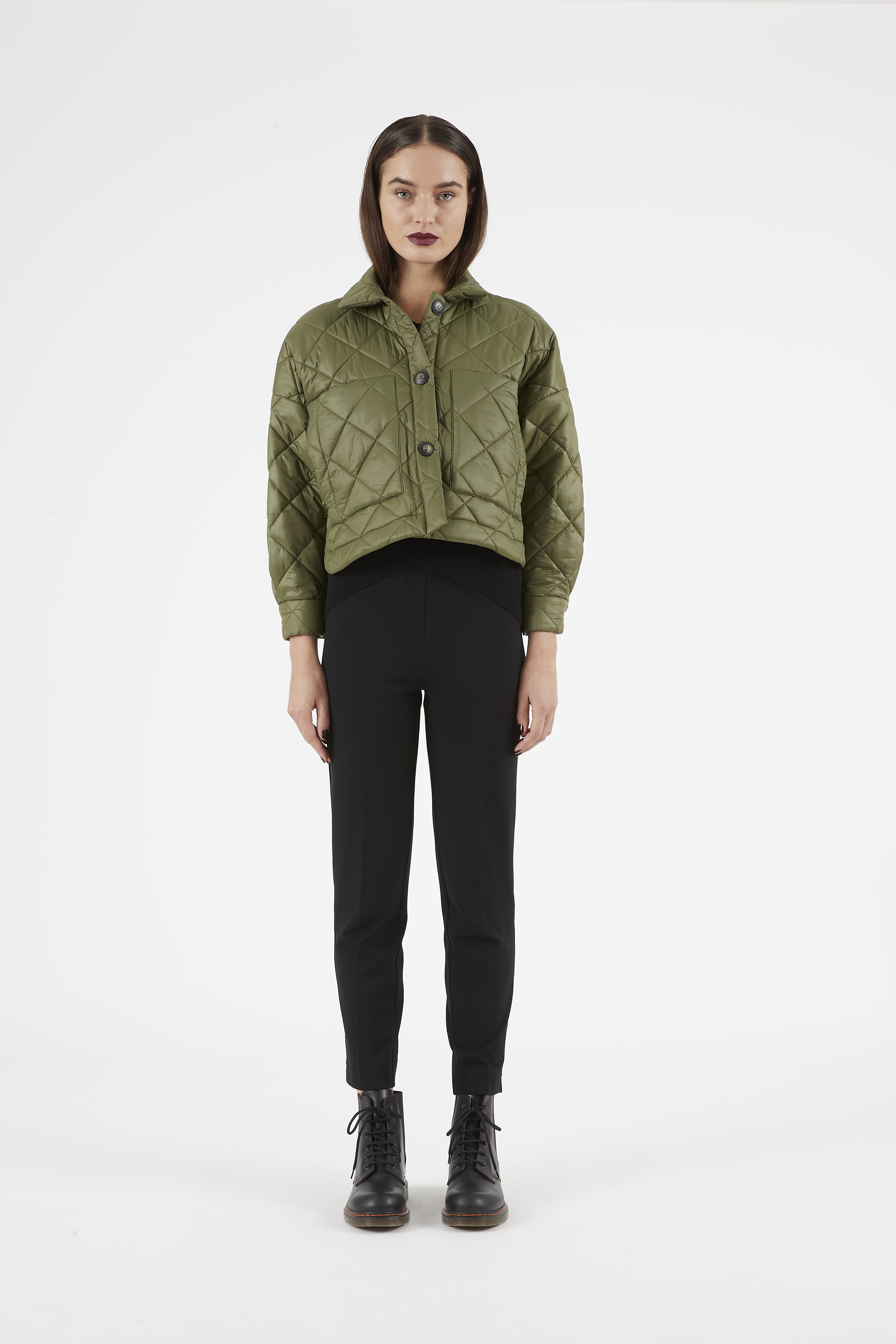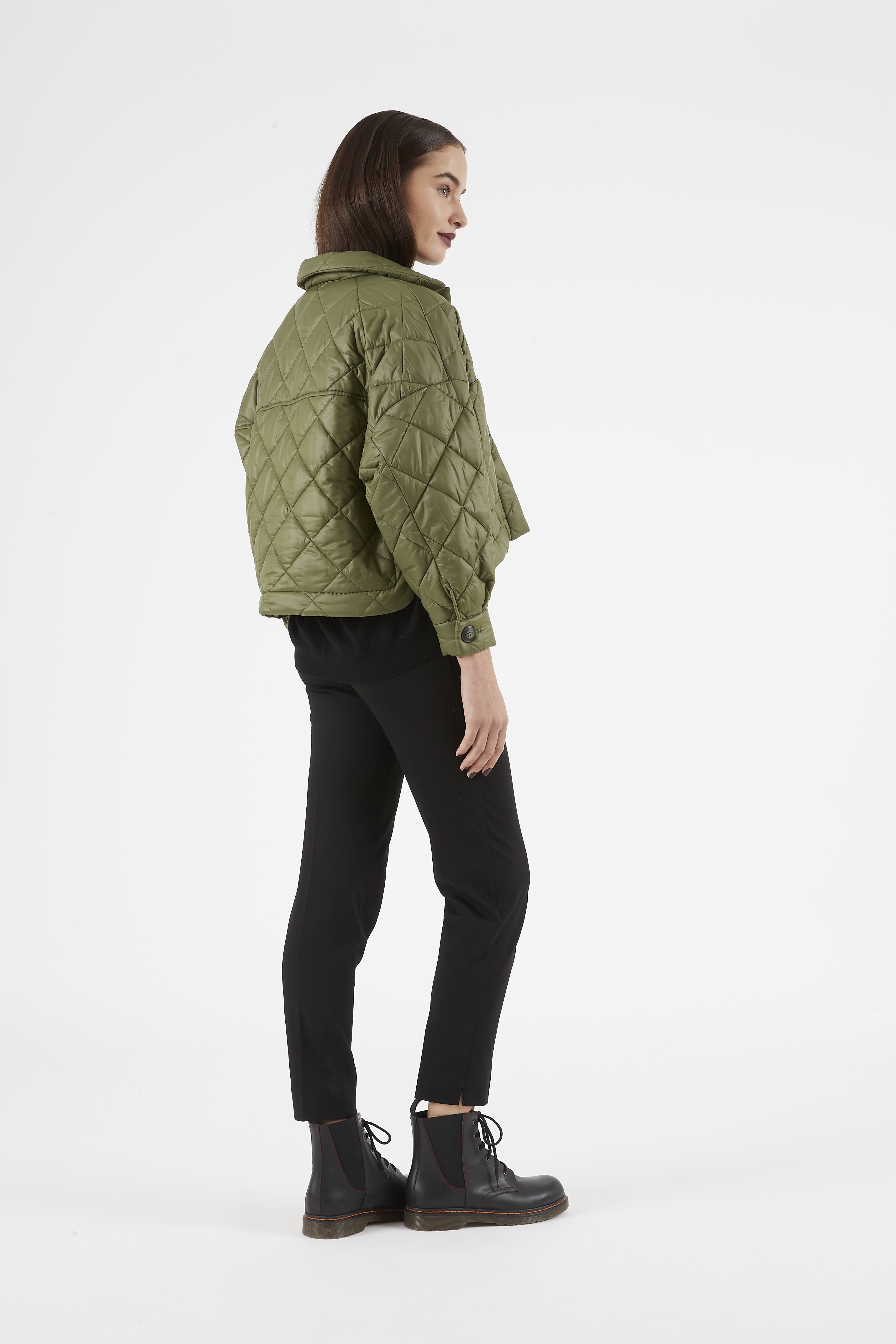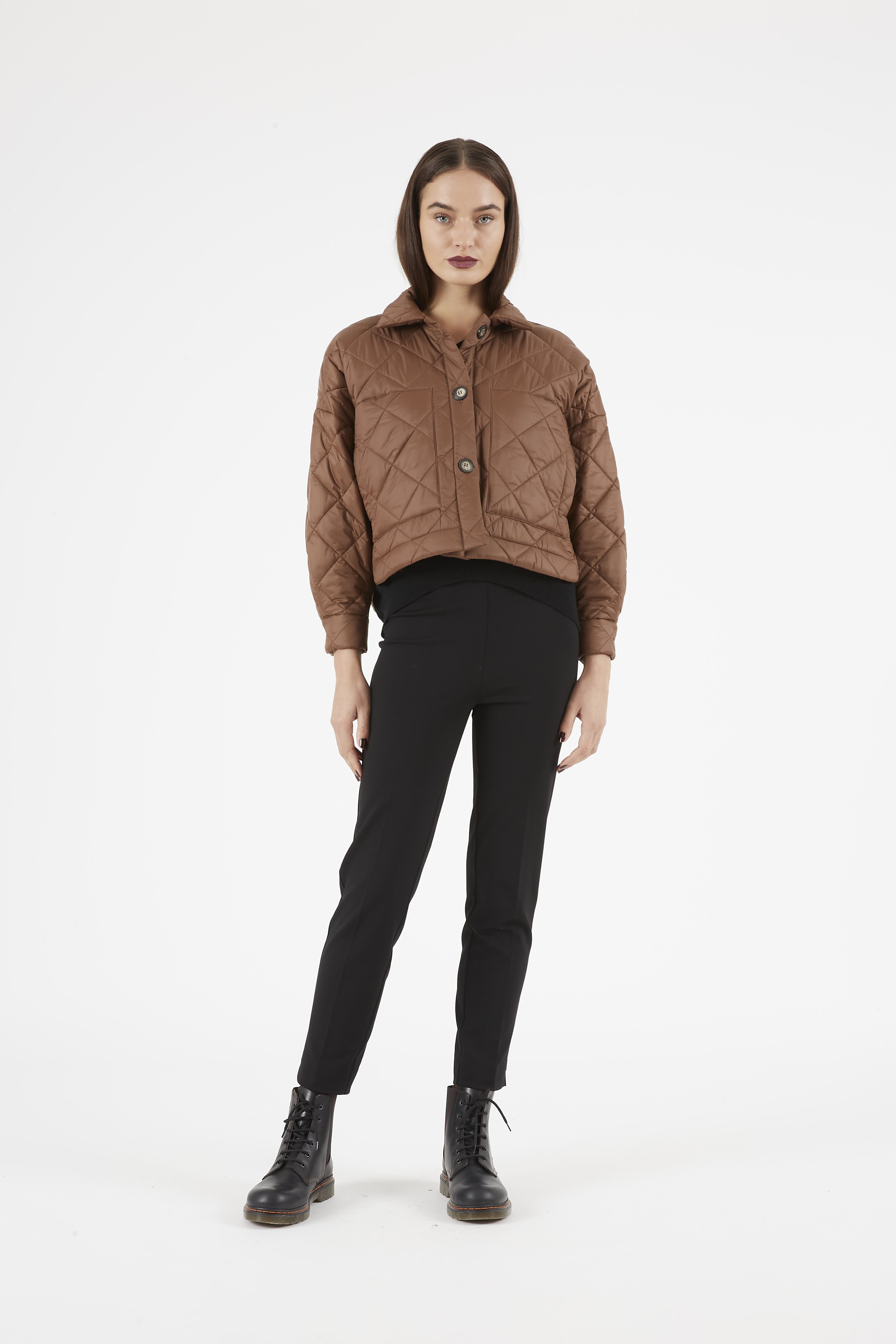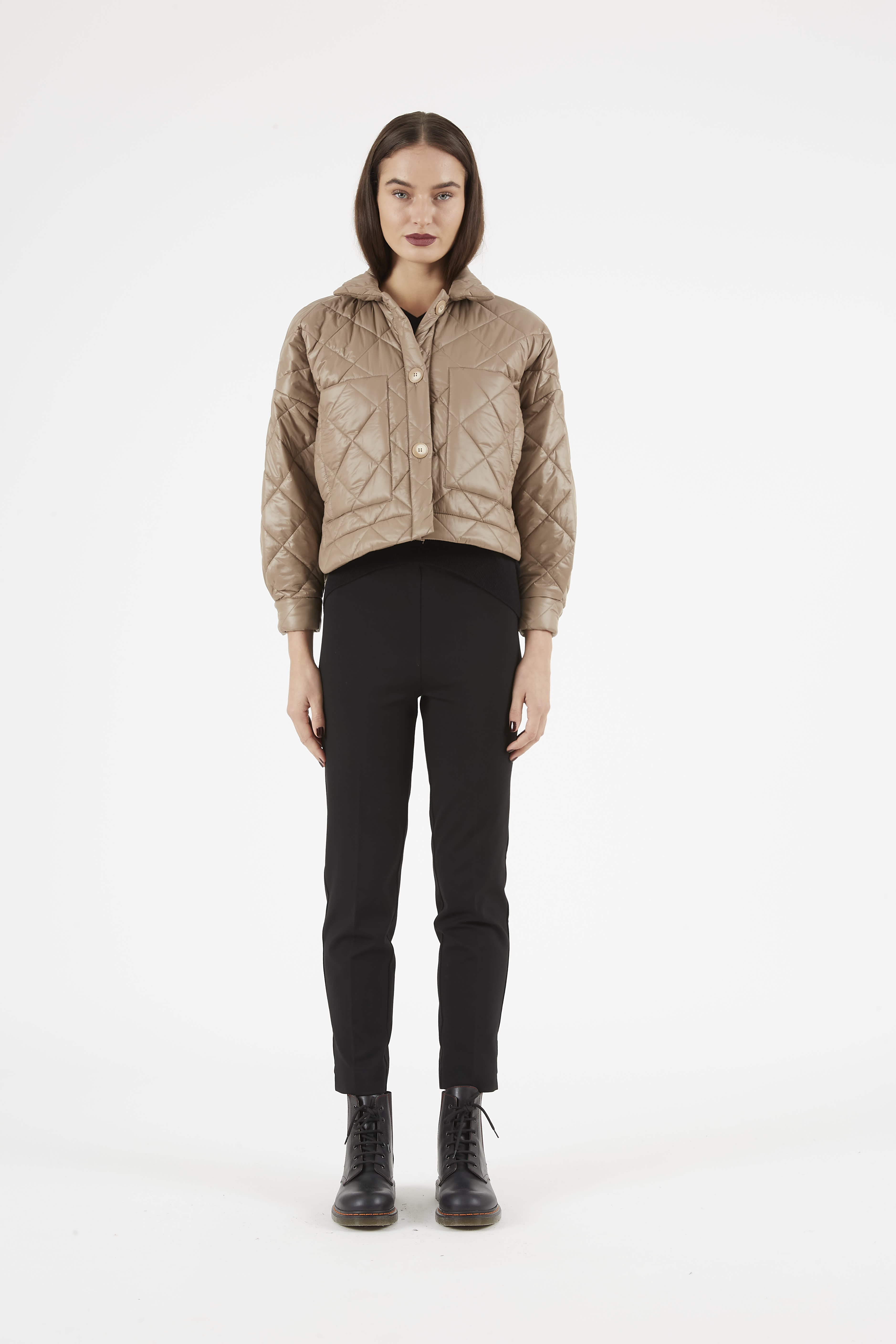 Blouson a rombi trapuntato. Chiusura frontale con bottoni. Grandi tasche applicate laterali. Bottone al polso.