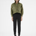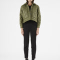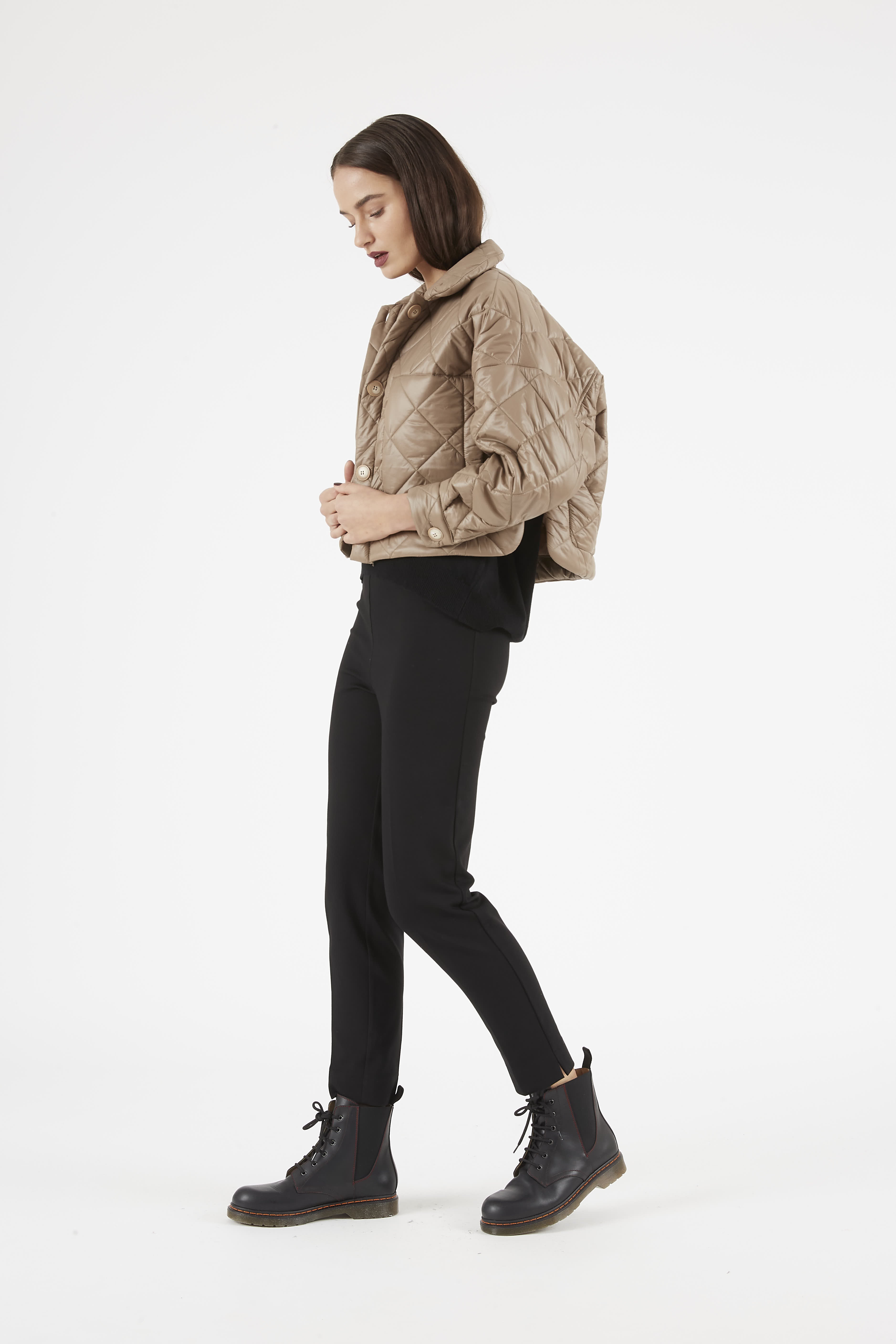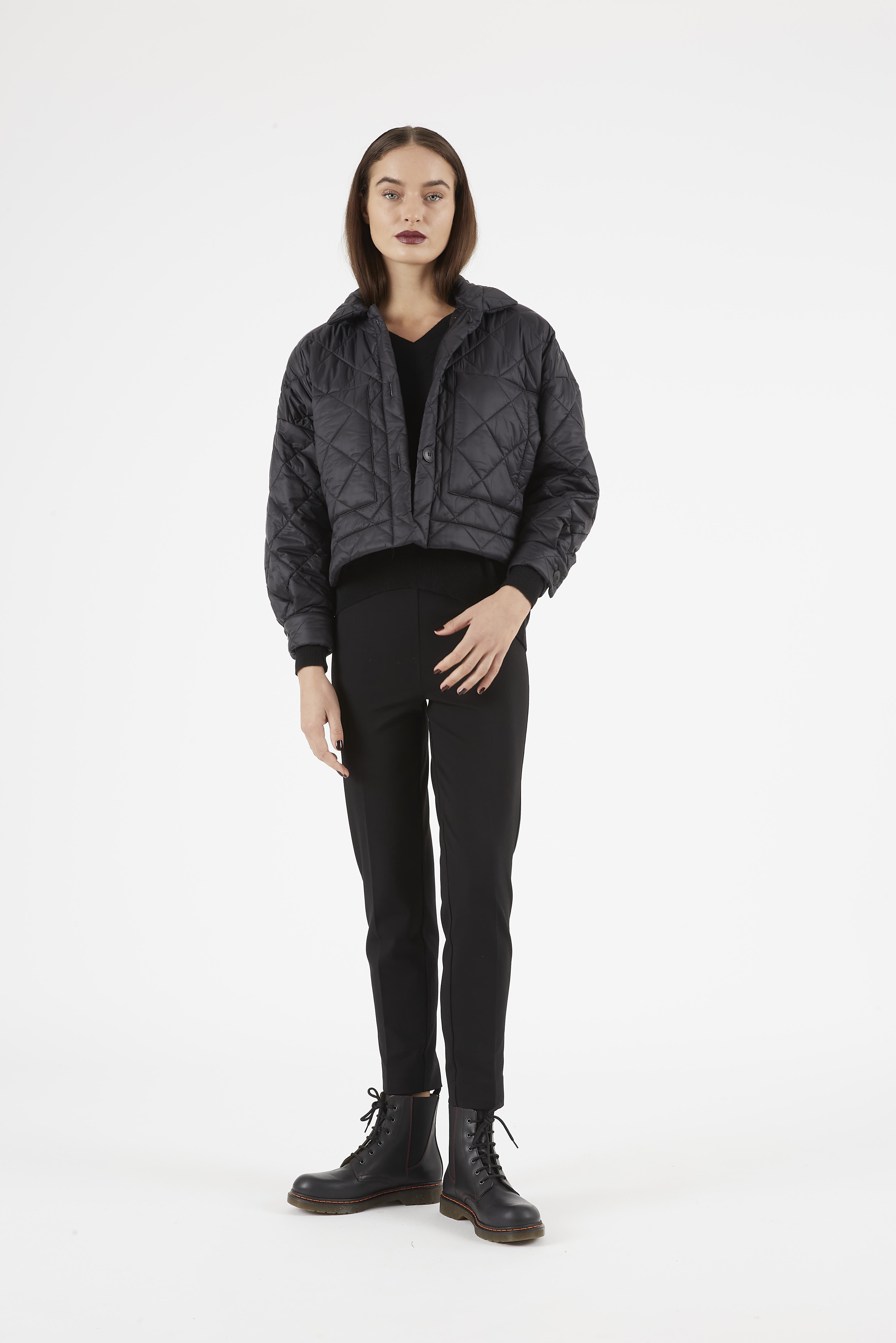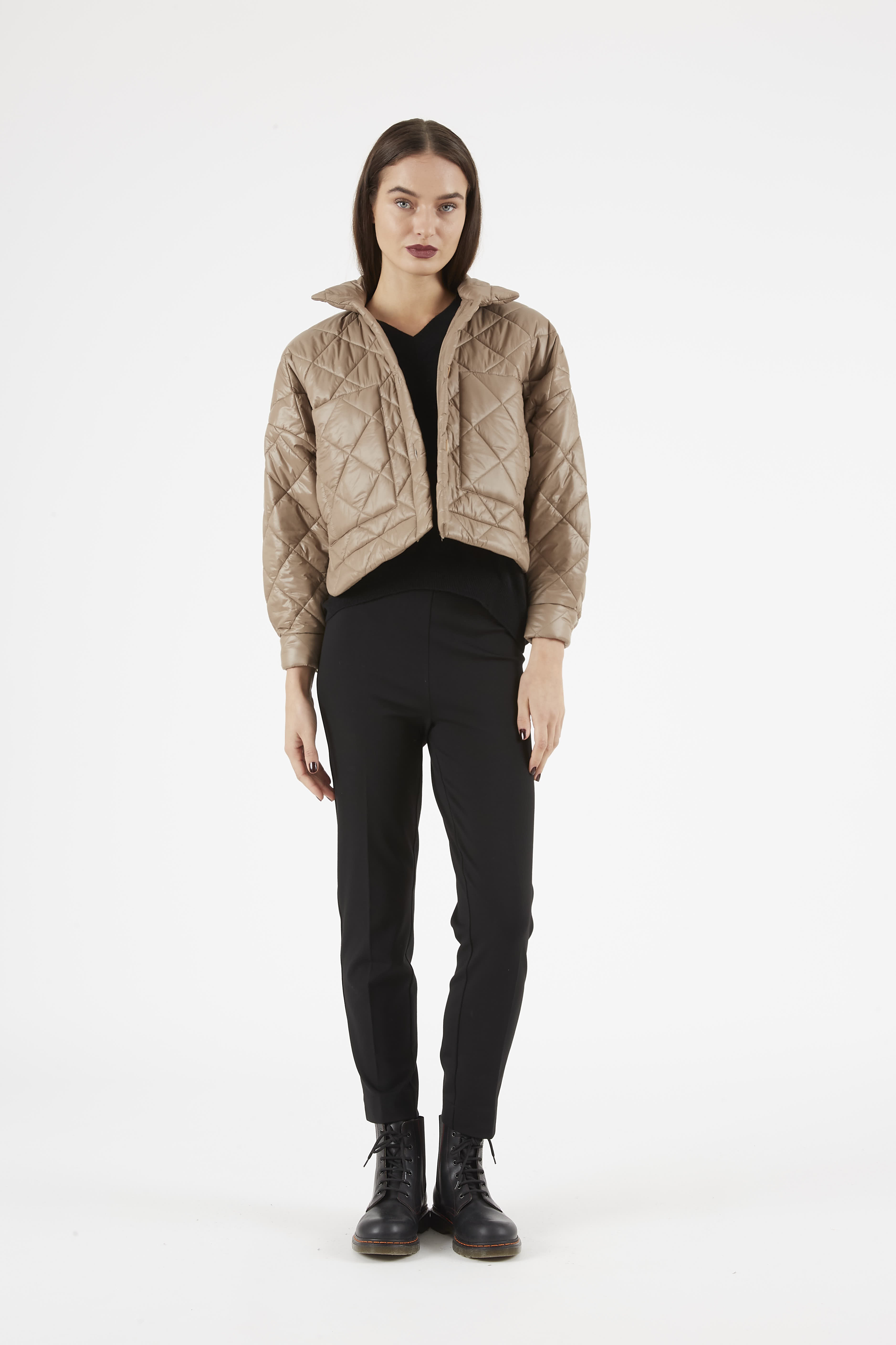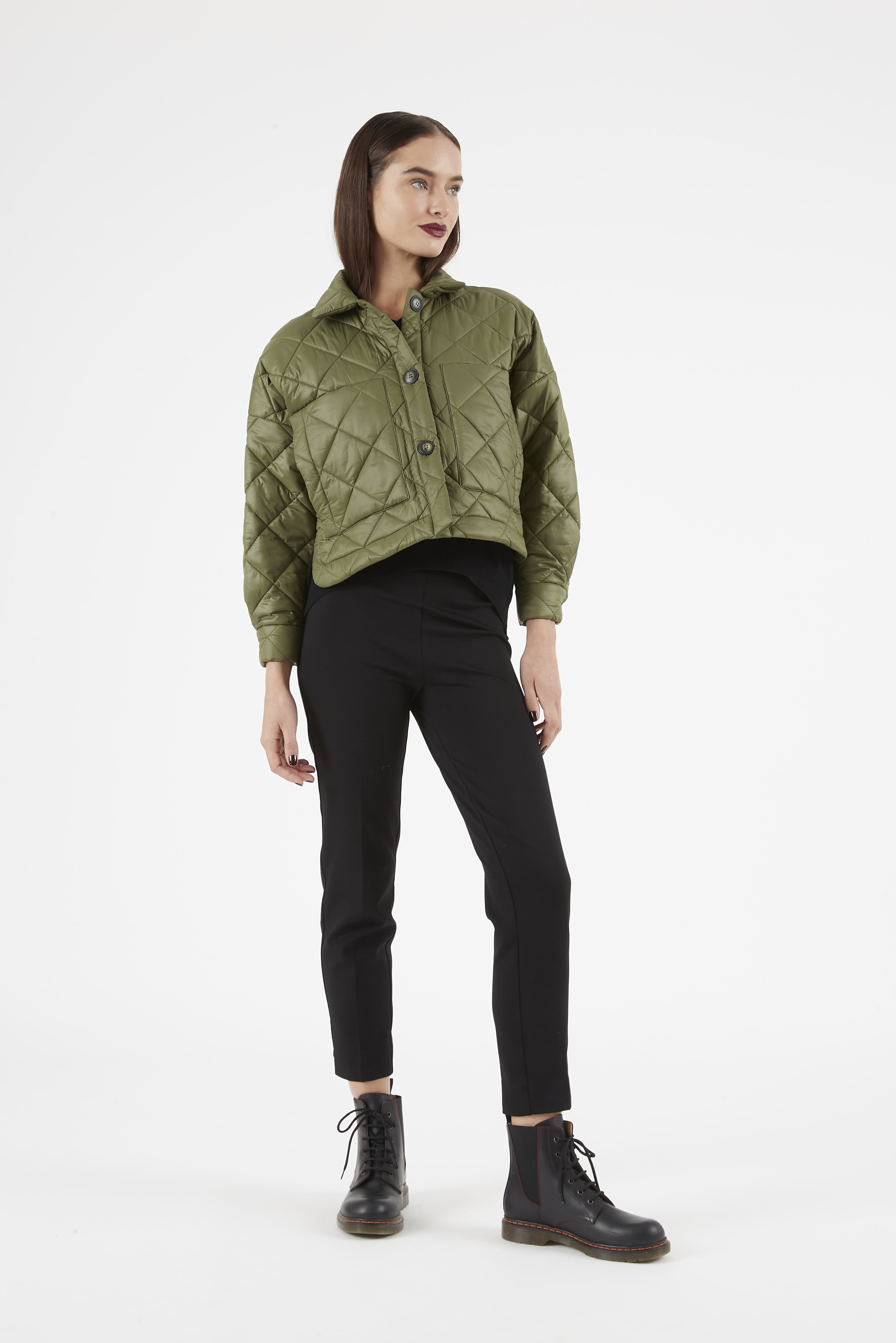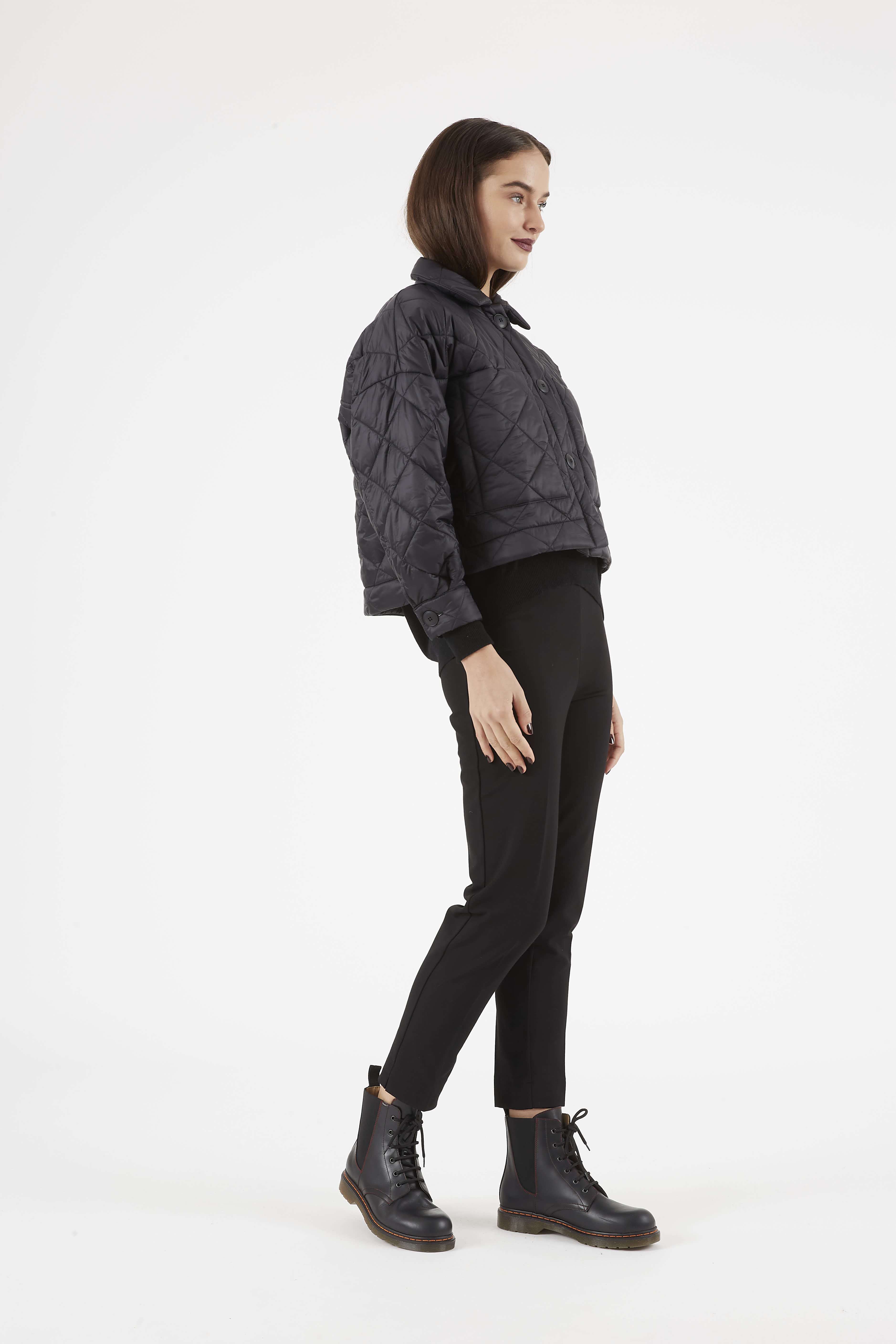 Blouson a rombi trapuntato. Chiusura frontale con bottoni. Grandi tasche applicate laterali. Bottone al polso.